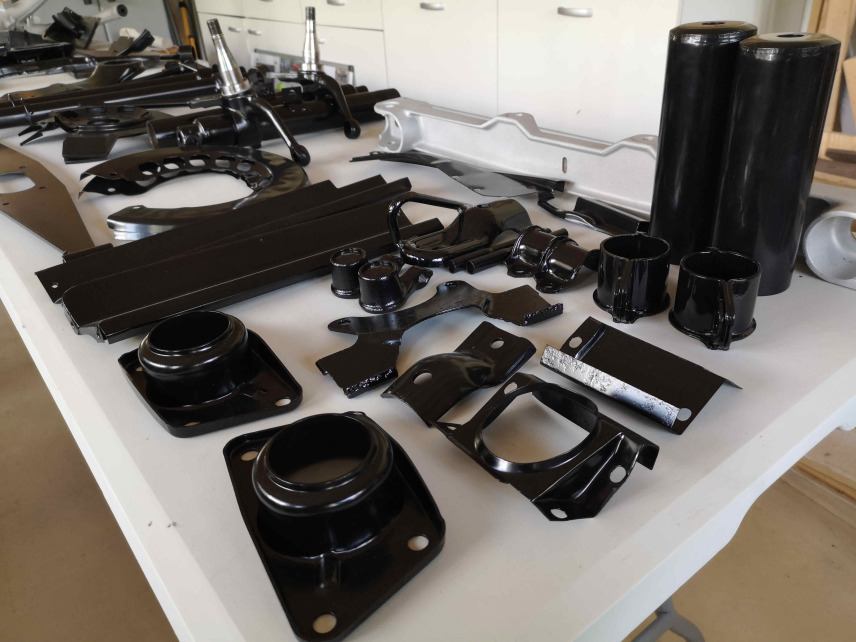 Sablage et peinture des éléments des trains roulants.